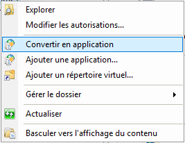 Les instructions décrivent la procédure de conversion des répertoires en applications Procédure :
